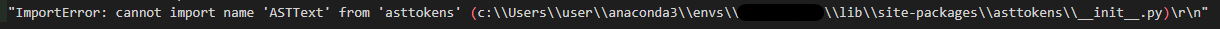 ImportError 발생. asttokens의 __init__.py 에서 ASTText를 import 할 수 없다는 에러.
